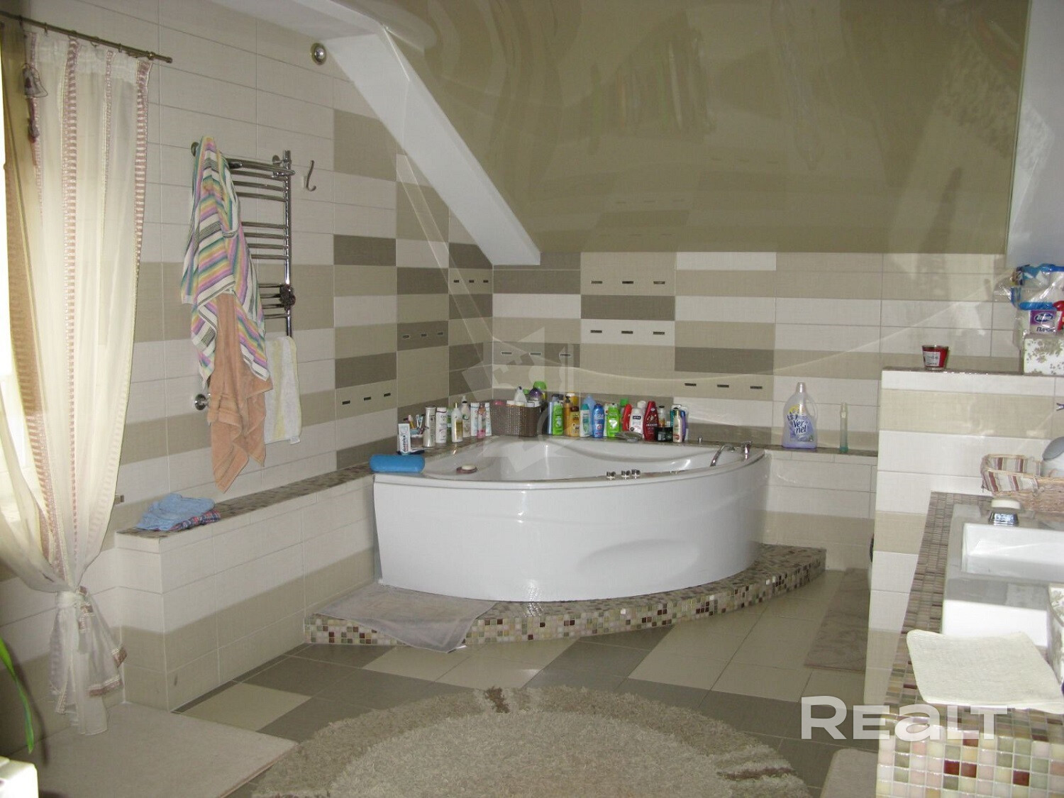 - крыша стропильная система выполнена из бруса 200х7,5 , утеплена мин ватой толщиной 300 мм. Само покрытие из качественного катепала (мягкая кровля тегола Италия).