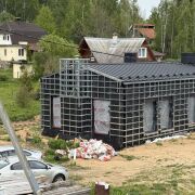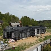 Продается одноэтажный дом в стиле минимализм с потолками 3,5 м, площадью 280 м² и цокольным этажом 150 м² (высота 2,8 м). Дом построен из красного полого кирпича, утеплен, с алюминиевым остеклением. В шаговой доступности магазин и Вяча, до Минска 12 км. Готовность 70%, все проекты (вентиляция, канализация, водоснабжение) на руках. В каждой спальне есть гардероб и санузел. Куплены алюминиевые входные группы и двери, газ и электричество подведены. Срочная продажа, помогу с реализацией строительств