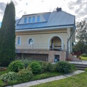 Коттедж 1994 г.п., общая площадь 250,5 кв.м, по СНБ 386,3 кв.м, жилая 149,3 и кухня 17 кв.м, стены кирпич, дом оштукатурен и утеплен, 3 уровня. В цоколе много подсобных помещений, котельная, гараж, сауна, санузел. На первом этаже гостиная, зал, кухня, из кухни помещение с окном для хранения кухонной утвари, санузел. На втором этаже 3 спальни (одна с выходом на большой балкон), санузел. Есть постирочная комната.