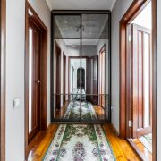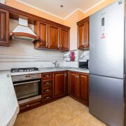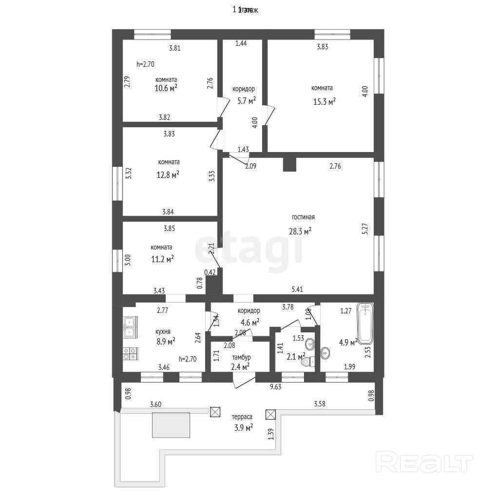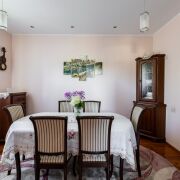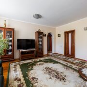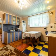 5 жилых комнат, состоящих из 3 спальных комнат, гостиной и столовой (28.3 м2, 15.3м2, 10.6 м2, 12.8 м2, 11.2 м2), коридора - 5.7 м2 и кухни - 8.9 м2, раздельного сан.узла и просторной террасы - 3.9 м2. Сделан добротный ремонт из качественных строительных материалов. Пол в сан.узле, прихожей и кухне с водяным подогревом, облицован современной плиткой. В комнатах полы дощатые, утеплены и покрыты лаком. Межкомнатные двери из массива ольхи, окна - деревянные (лиственница).