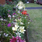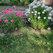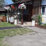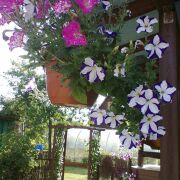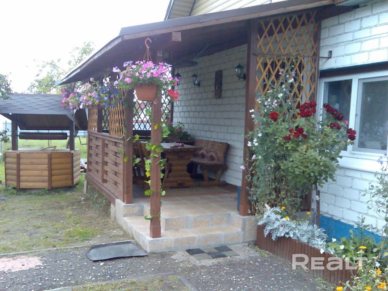 На территории —плодовые деревья, ягодные кустарники, декоративные растения.