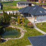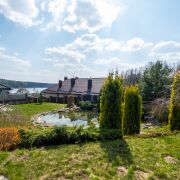 Крыша – черепица керамическая (Германия), стеклопакеты – деревянные. На участке дорогостоящей ландшафтный дизайн, а также искусственный водоем с фильтрацией, установлен автополив.