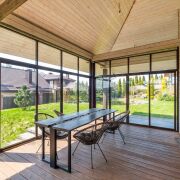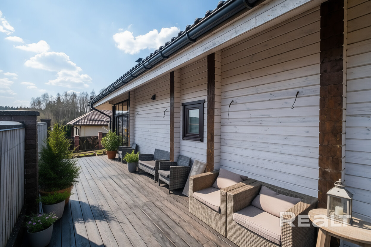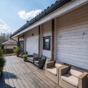 Дом выполнен по индивидуальному архитектурному дизайн-проекту, в ЭКО-стиле. Использовались высококачественные импортные европейские строительные материалы. Материал наружных и внутренних стен – клееный брус. Дерево наполняет дом уютным ароматом, обеспечивая высокую прочность, долговечность конструкции и комфортный микроклимат круглый год.