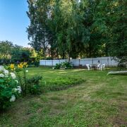 Земельный участок площадью 4.8 (реальная площадь 5.5) сотки огорожен забором и ухожен, создавая идеальное пространство для отдыха и уединения. Соседи только с одной стороны.