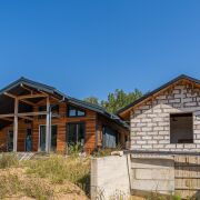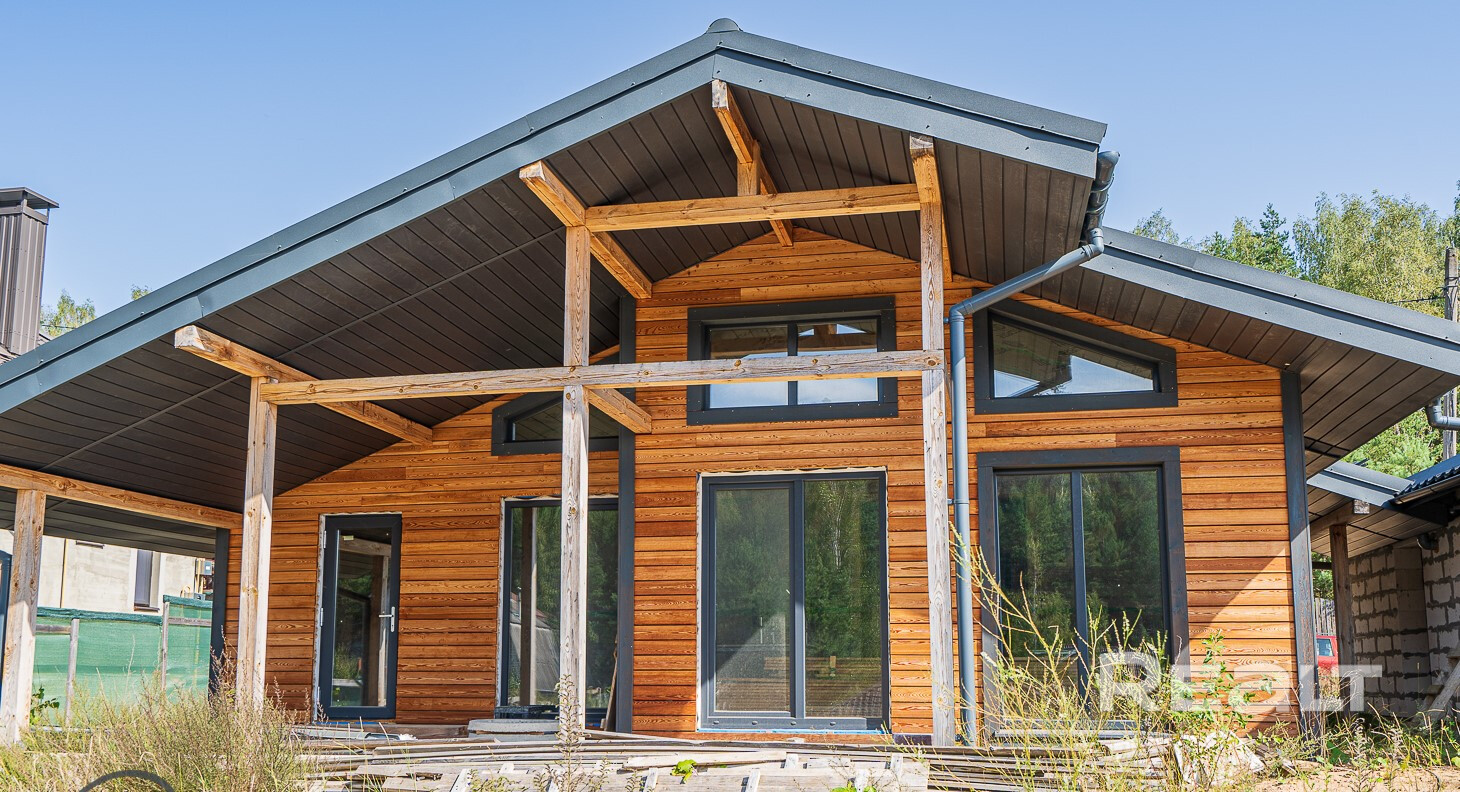 Дом из лиственницы. Утепление 250мм! Газ подведен к дому (см. фото), вода и электричество в доме. Окна в пол с выходом на террасу с шикарными видами. Планировка продумана для комфортного проживания семьи. Просторная кухня-гостиная с выходом на террасу, две спальни, санузел, бытовая комната. Дом без отделки, что позволяет вам воплотить свои дизайнерские решения.