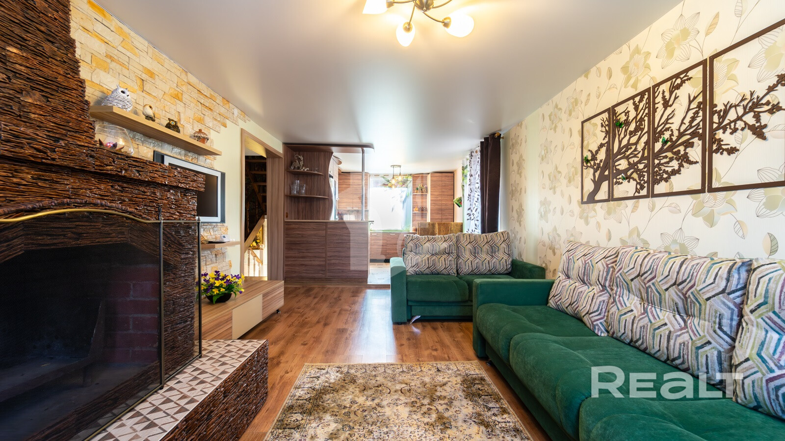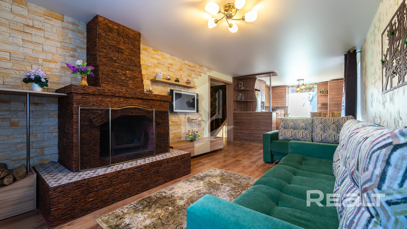 Жилой дом: крепкий и теплый, с 5 комнатами, 2 санузлами и просторной кухней-гостиной с классическим камином. Для настоящего наслаждения – русская печь с лежанкой на первом этаже. В доме остаётся мебель и техника!