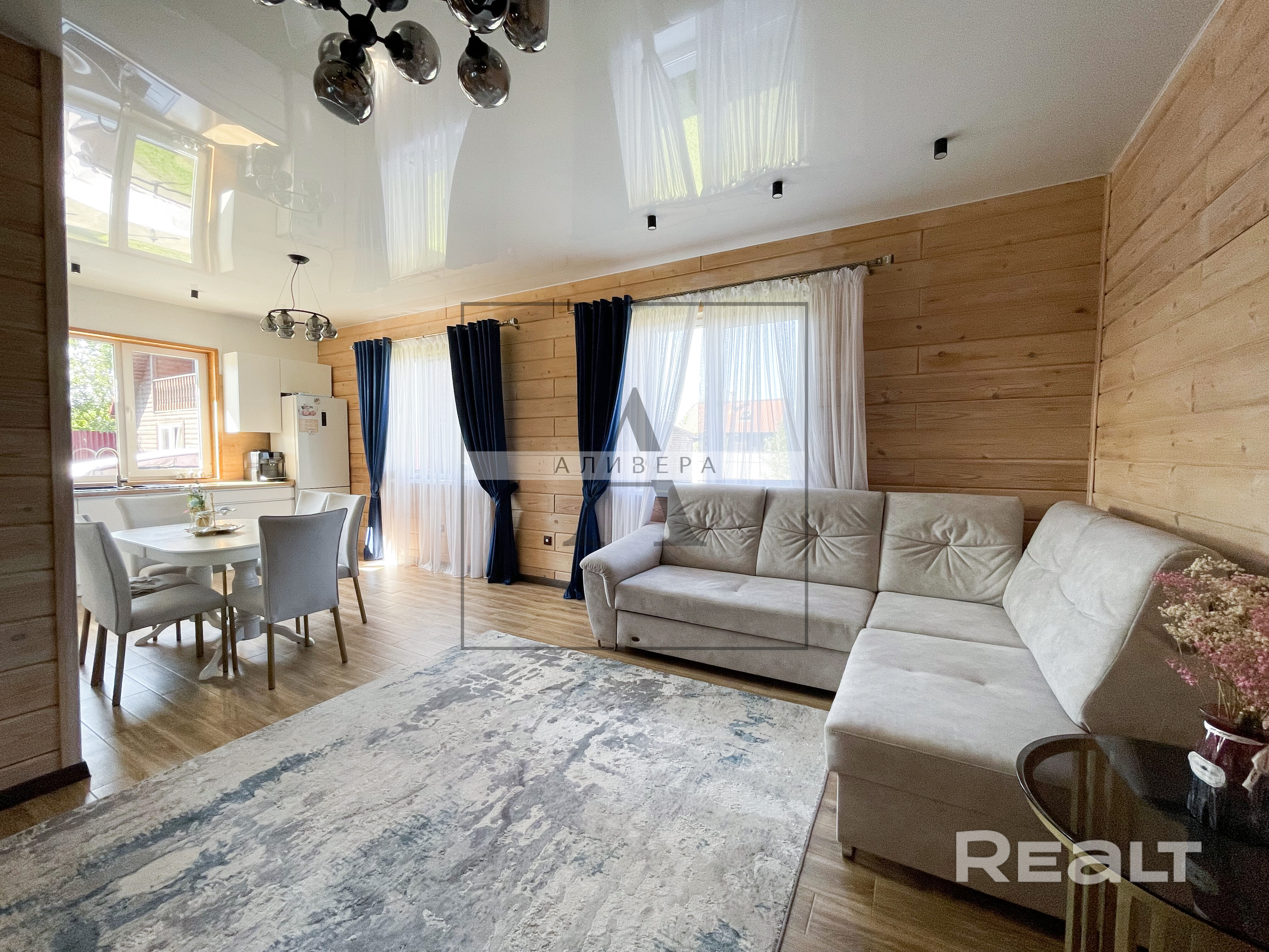 Блочный дом, обшит сайдингом нового поколения, кровля - металлочерепица, окна - ПВХ. Отопление - теплый пол (водяные радиаторы работают от электро-котла), водоснабжение - скважина, канализация - местная, также имеется интернет, спутниковое ТВ. В доме отдельные 3 спальни + гостиная комната с кухонным оборудованием, санузел, топочная.