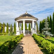 На территории комплекса – шикарный садово-парковый ландшафт, включающий более 3000 насаждений, а также зона барбекю, ротонда, беседка и фонтан.