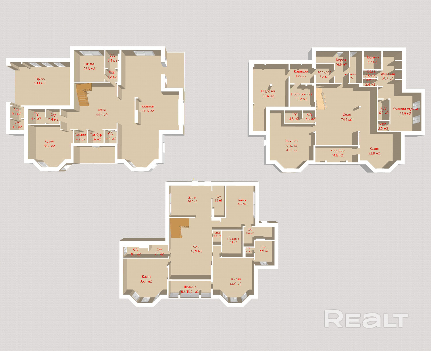 Комплекс, площадью 1100 м.кв., включает 3 здания: