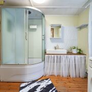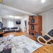 Канализация местная (два переливных колодца), вода – колодец, отопление – печь и камин. Крыша – шифер.