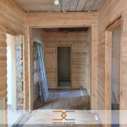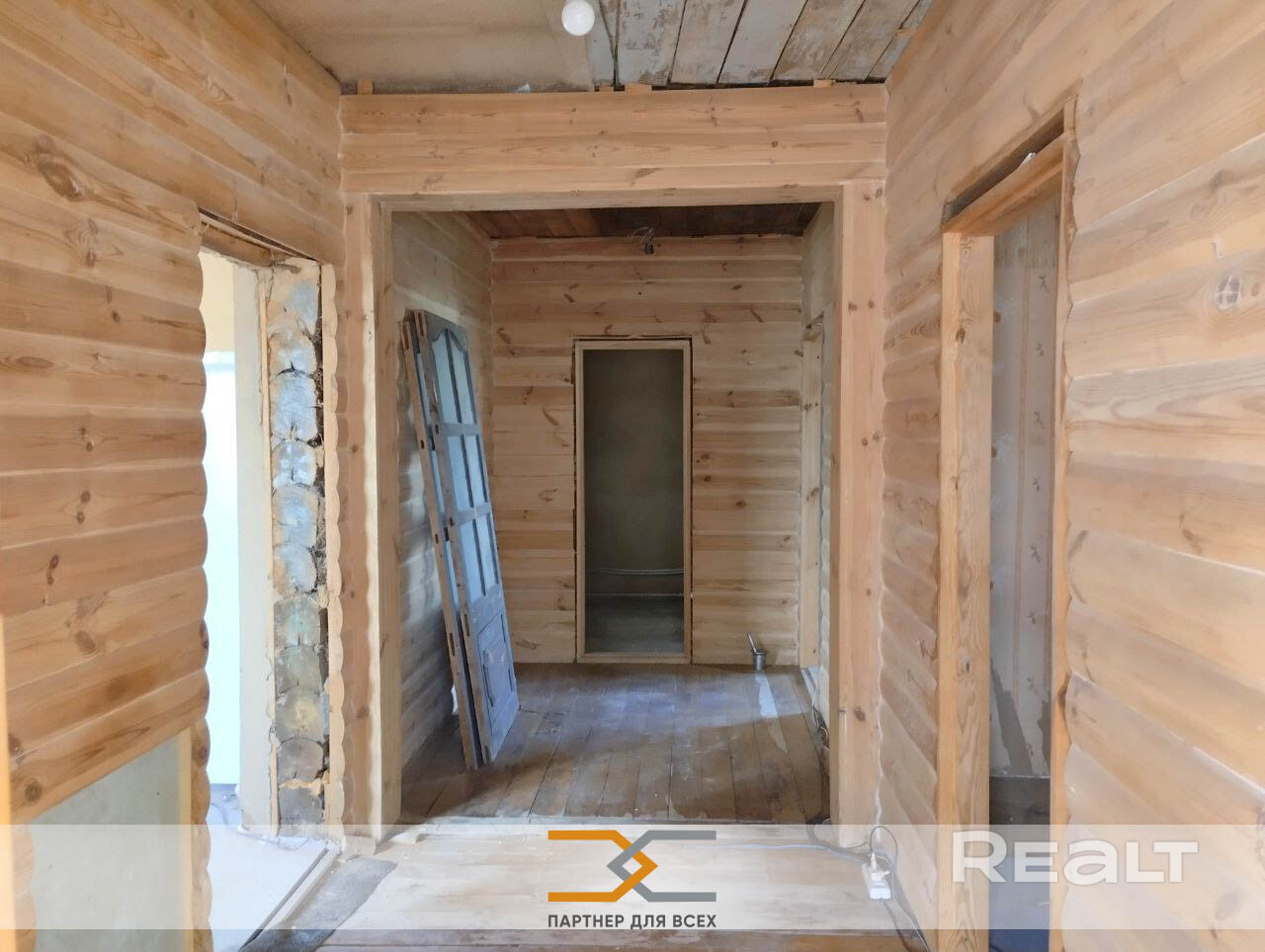 Дом находится в стадии реконструкции (около 97 кв.м). Стены бревенчатые плюс пристройки из блоков, сделан мансардный этаж, стены оштукатурены, окна ПВХ. Внутри частично выполнена отделка деревом. В доме газовое отопление (газовый котел), центральные газоснабжение и водоснабжение. Дом с удобствами, канализация местная. На обработанном, ухоженном и огороженном участке площадью 15.39 соток имеется действующая баня, и другие хозпостройки.