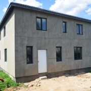 Фасад дома и цоколь утеплен, оштукатурен, готов под декоративную штукатурку и покраску.
