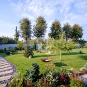 Большой шикарный благоустроенный участок площадью 25 соток в праве пожизненного наследуемого владения. Участок полностью огорожен, въездные ворота откатные с электроприводом. На участке имеется современная баня, оборудованная бассейном с джакузи и большой жилой комнатой с погребом, которая может использоваться в качестве гостевого домика. Есть просторный гараж с крытым навесом для хранения автомобиля, оборудованный постом для зарядки электромобиля. На участке выполнен ландшафтный дизайн и посажен сад с плодовыми деревьями и кустарниками.