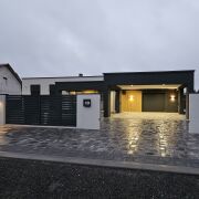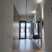 Современный, новый коттедж премиум класса, в одном уровне, в стиле софт-минимализм. Готовность100%. Умный дом с дистанционным управлением. Видеонаблюдение, домофон. Приточно-вытяжная вентиляция. Кровля-мембрана. Окна и двери - аллюминиевый профиль высота 2,7м Ral7016. Облагороженный участок правильной формы, забор, газон, сетка от кротов, по периметру туи. Гараж, крытая парковка для двух авто с зарядками для электромобилей. Ворота и откатные ворота- Hormann. Бытовая техника Neff, Siemens, Vard.