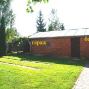 На участке расположены крытая и остекленная беседка, теплица, погреб. Гараж, баня и сарай в одном блоке.