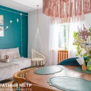 Библиотека/кабинет (11 м2) с лаунж-зоной. Здесь уже есть массажное кресло, винтажный проигрыватель и книжные полки. Пространство готово для работы или отдыха.