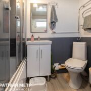 Просторный санузел (4.8 м2) с новой сантехникой и полноразмерной душевой кабиной (170 см).