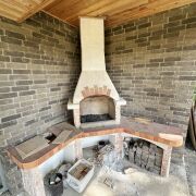 Современный ремонт завершён на 85%. Клинкерный кирпич, итальянская плитка, гараж для лодки, баня на дровах.