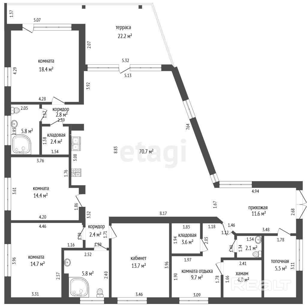 3 санузла.