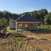 - С обратной стороны дома расположена большая терраса и выход в лес.