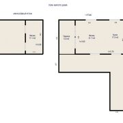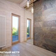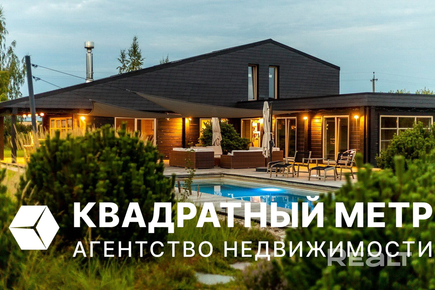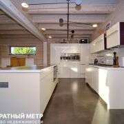 Основной двухуровневый дом с общей площадью жилых помещений 176,4м2, состоит из двух пересекающихся павильонов, один из которых со скатной крышей, а другой – с плоской. Внутри: просторный холл с зеркальными шкафами, гостиная с камином, столовая с кухонным оборудованием, четыре спальни, ванная комната, совмещенный гостевой санузел и подсобные помещения.