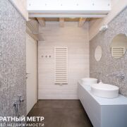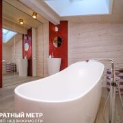 3. Большая ванная комната с глубокой ванной из искусственного камня, естественно освещенной, отражающейся в высоких зеркалах.