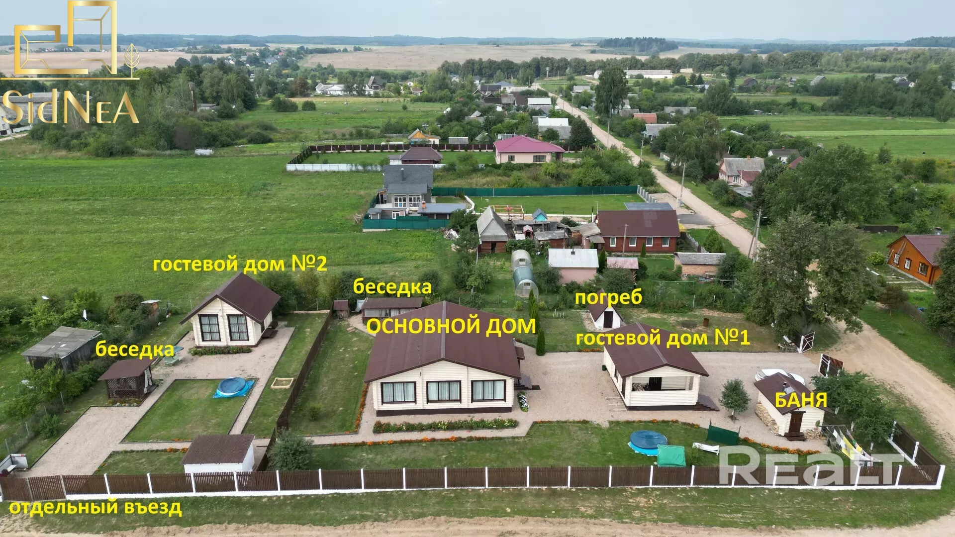 Продается готовый к проживанию дом общей площадью 128 м2, 2 гостевых домика и баня на участке 24.93 соток в д. Знаменка, Логойский р-н, Минская область, Логойский с/с. Всего 28.5 км от МКАД! Логойское направление.