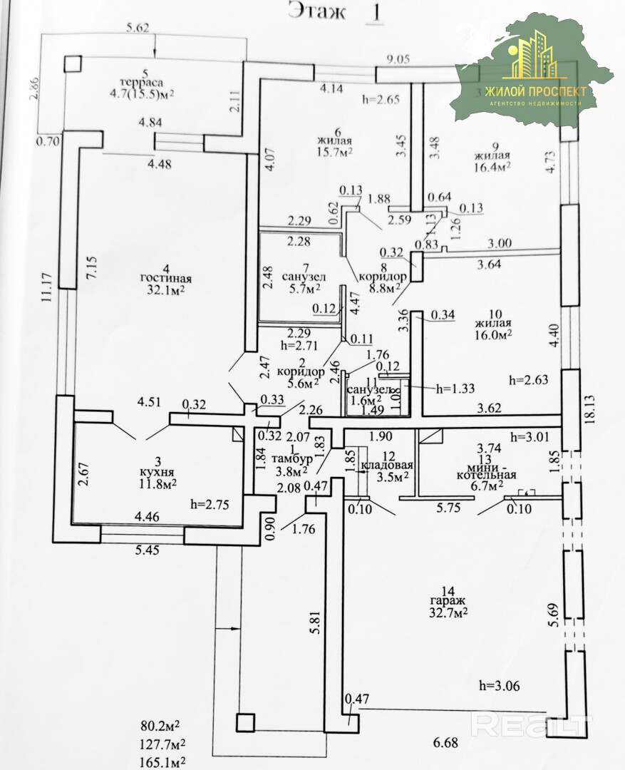 - Общая площадь: 165,1 м2, жилая площадь: 127,7 м2