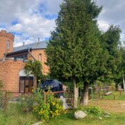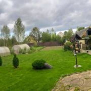 В одной части дома есть баня с комнатой отдыха. На участке погреб, хозпостройки, эксклюзивная беседка, парники, огород, плодовые и декоративные деревья и кусты.