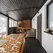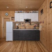 В бане имеется большая оборудованная кухня, комната отдыха, прекрасная парилка, просторный санузел и остекленная терраса с зоной барбекю для большой компании.
