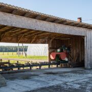 Высокий навес на 8 колоннах : может использоваться для хранения сельхозтехники, дров, стройматериалов или как место для будущего летнего кафе/зоны отдыха при агробизнесе.