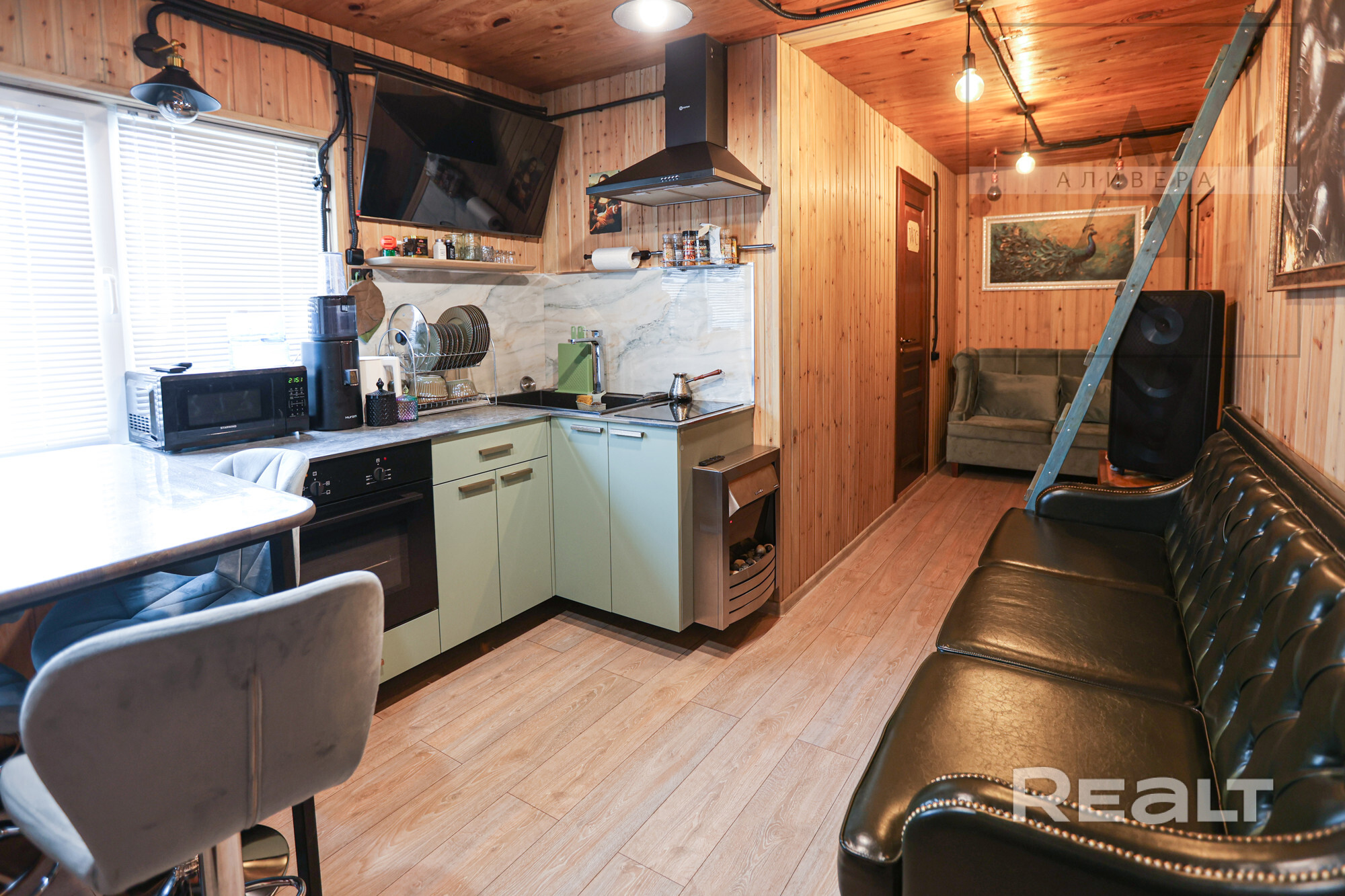Внутри комнаты обшиты деревом.