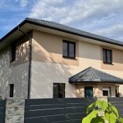 - стены: газосиликатные блоки толщиной 500мм, что позволило добиться высокой термоизоляции без дополнительных утеплителей и исключить смещение точки росы внутрь стены (важно для газосиликата). Во всём доме установлены современные энергоэффективные окна.
