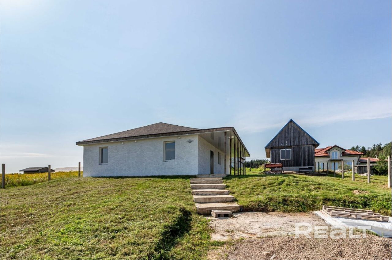 Комфортабельный дом со студией-гостиной и кухней 35,6м2. 3 жилых комнаты, мастер-спальня 12м2 с отдельным с/у 4,6м2, ванна, умывальник. Основной с/у 4,9м2 с большой душевой. Топочная-постирочная, газ и оптоволокно по улице. Терраса 13х2,2м. Фундамент лента 400мм+плита 200мм. Стены 300мм+утеплитель. Декоративная штукатурка под кирпичик. Перекрытия, стропила и минвата 200мм. Окна Rehau двухкамерные. Водяные теплые полы везде. Электрика разведена, 15 кВт. Септик 3х3 м3. Хозблок 6х9, шлагбаум, видео