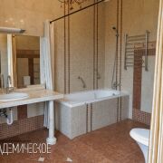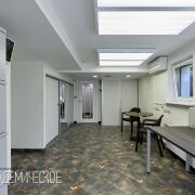 Жилая часть — два автономных этажа с 5 комнатами, двумя мастер-спальнями, просторной кухней, гардеробными и современной гостиной-столовой-кухней с панорамными окнами. Четыре санузла: один VIP с ванной, биде и душевой кабиной. Два с ваннами и биде. Один с душевой кабиной.