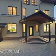 Бизнес пространство — два отдельных входа (парадный и служебный), ресепшен, 8 кабинетов, 2 санузла, офис, комната персонала, кухня, гардеробная, постирочная, зона отдыха у бассейна — размещены на первом и цокольном этаже.