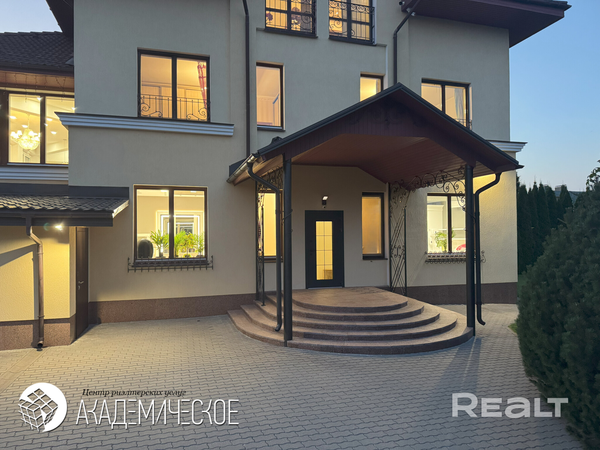 Большой участок в частной собственности. Закрытая территория зонирована на 3 части с отдельными входными группами и парковками, что обеспечивает приватность, безопасность и тишину. Ландшафтный дизайн, 235 деревьев, вечерняя подсветка.