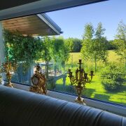 Собственник. Продаю в связи с переездом . Каркасный дом. Крайний участок. Проживаю в нем круглогодично. Полностью готов к проживанию. Находится в живописном месте. Горнолыжный центр находится в 700 метров от дома. На участке есть 40 футовый контейнер для садовой техники.Из гостиной выход на веранду.Отопление электрическое. Два входа. Торг