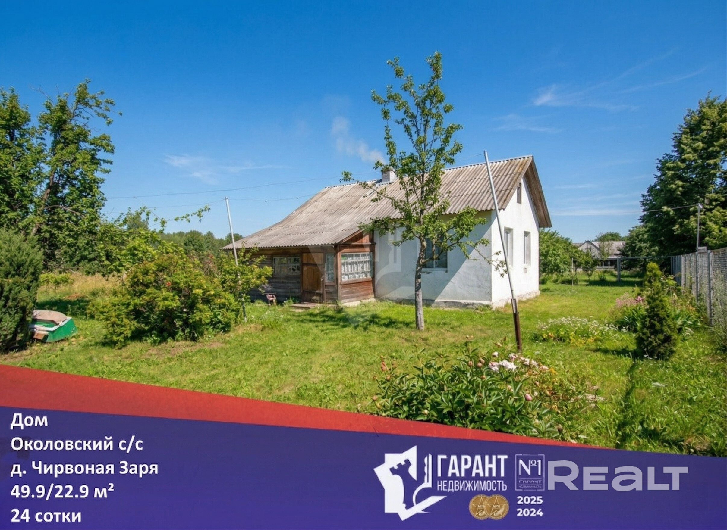 На участке в 24 сотки располагается новый сруб для бани , высажены плодовые деревья и кустарники. Предусмотрена мангальная зона, беседка, качели. Приезжает автолавка . Больше магазинов и инфраструктуры располагаются в 5-ти минутах езды на автомобиле в агрогородке Метличицы. Д.Чирвоная Заря – тихое, спокойное место с доброжелательными соседями.