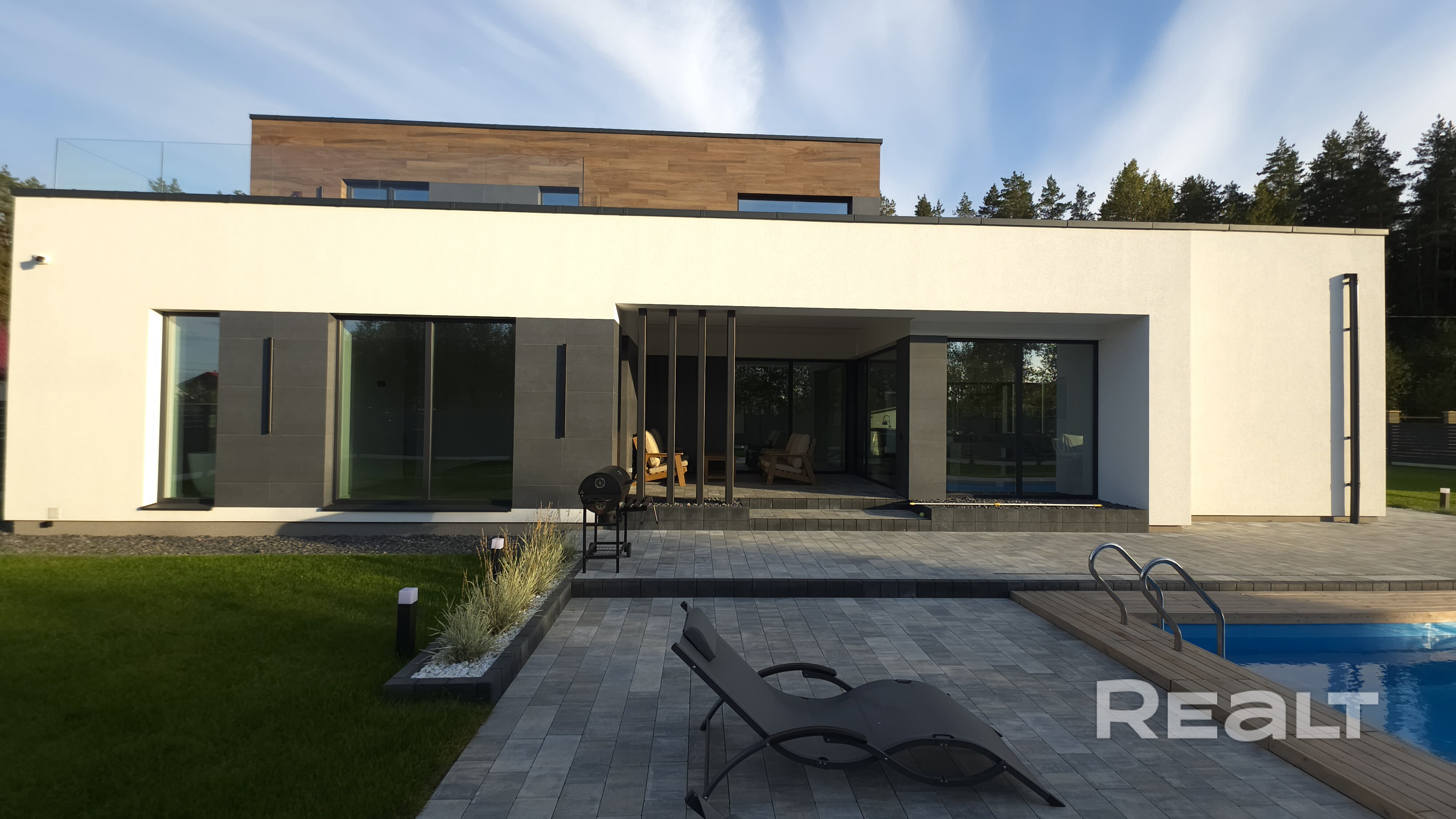 Готовый дом100 %. Современной архитектуры с бассейном у леса