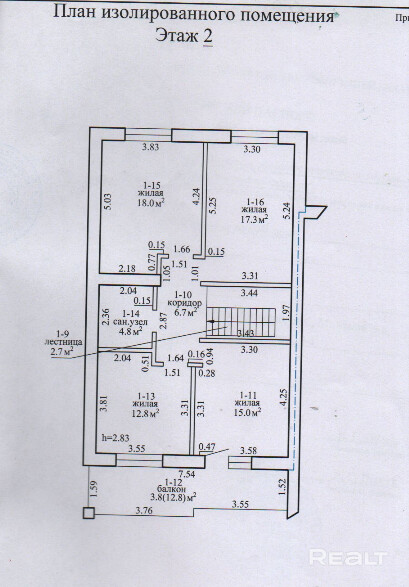- Высота потолка - 2.85м.