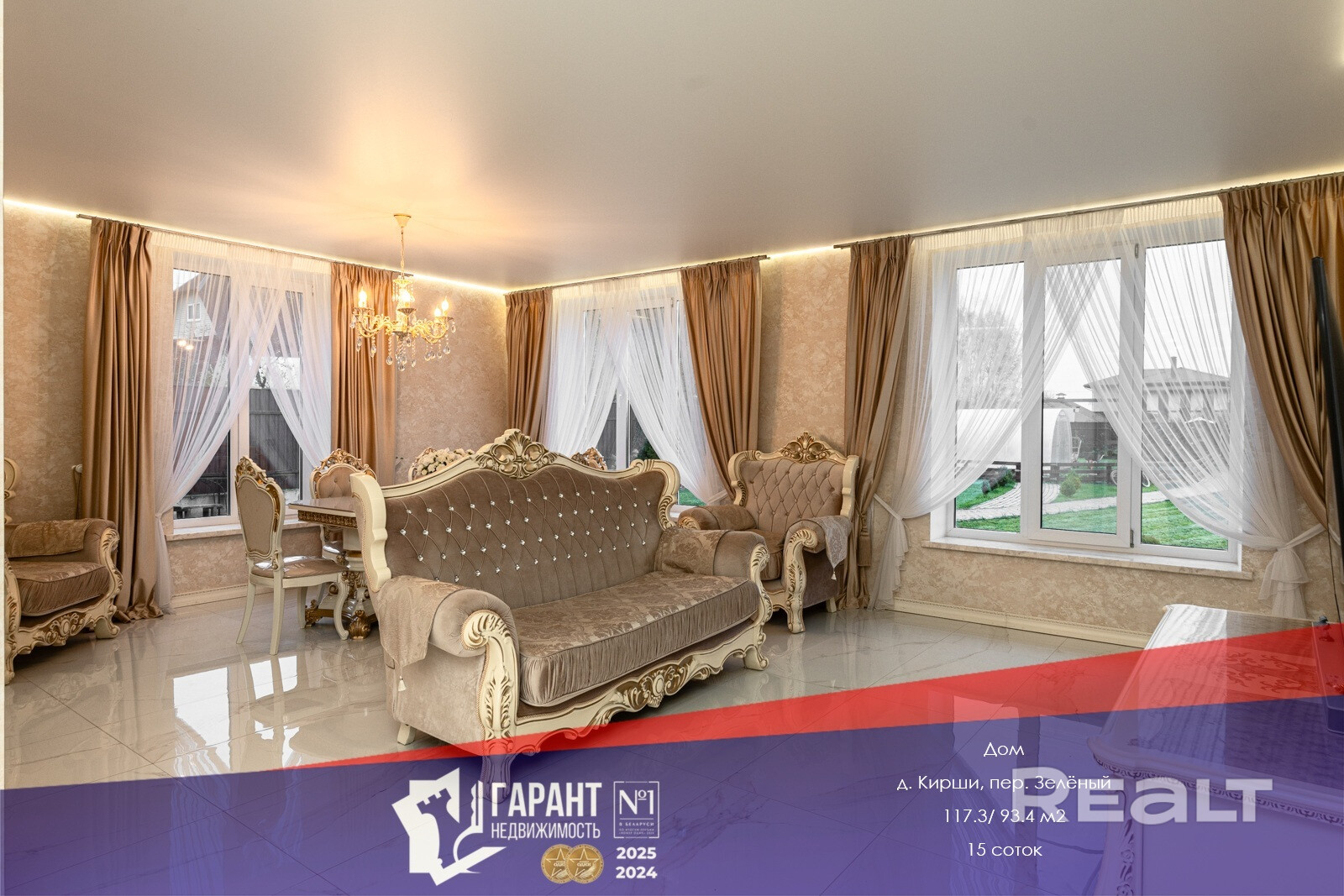 Мебель в доме подобрана в одном стиле. Обивка выполнена из долговечного и износостойкого материала.