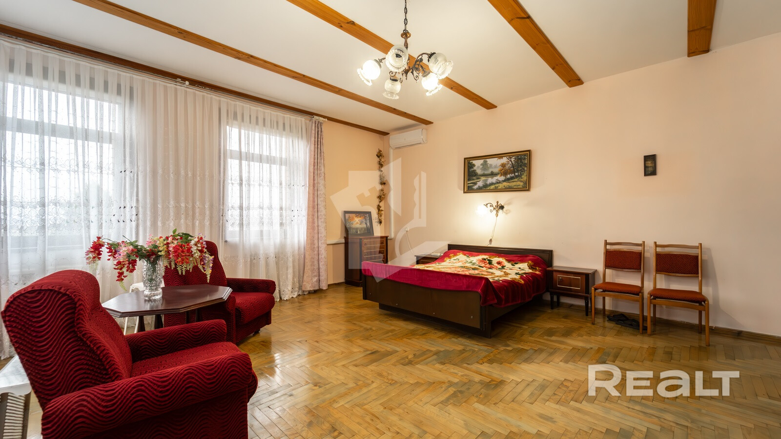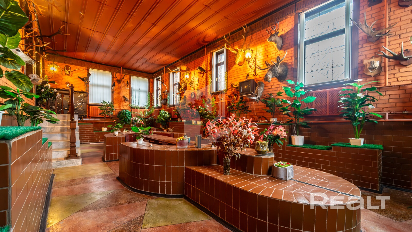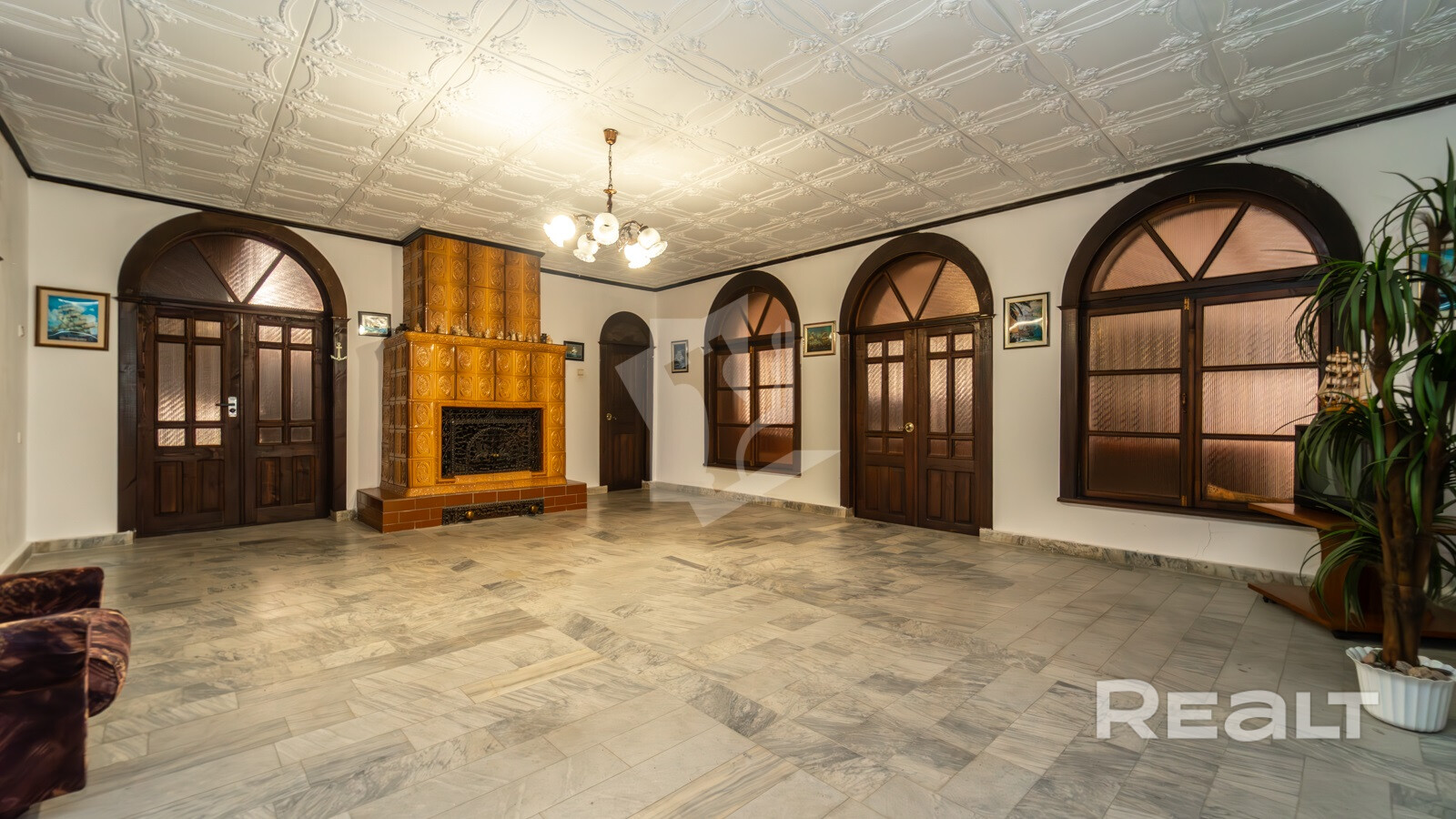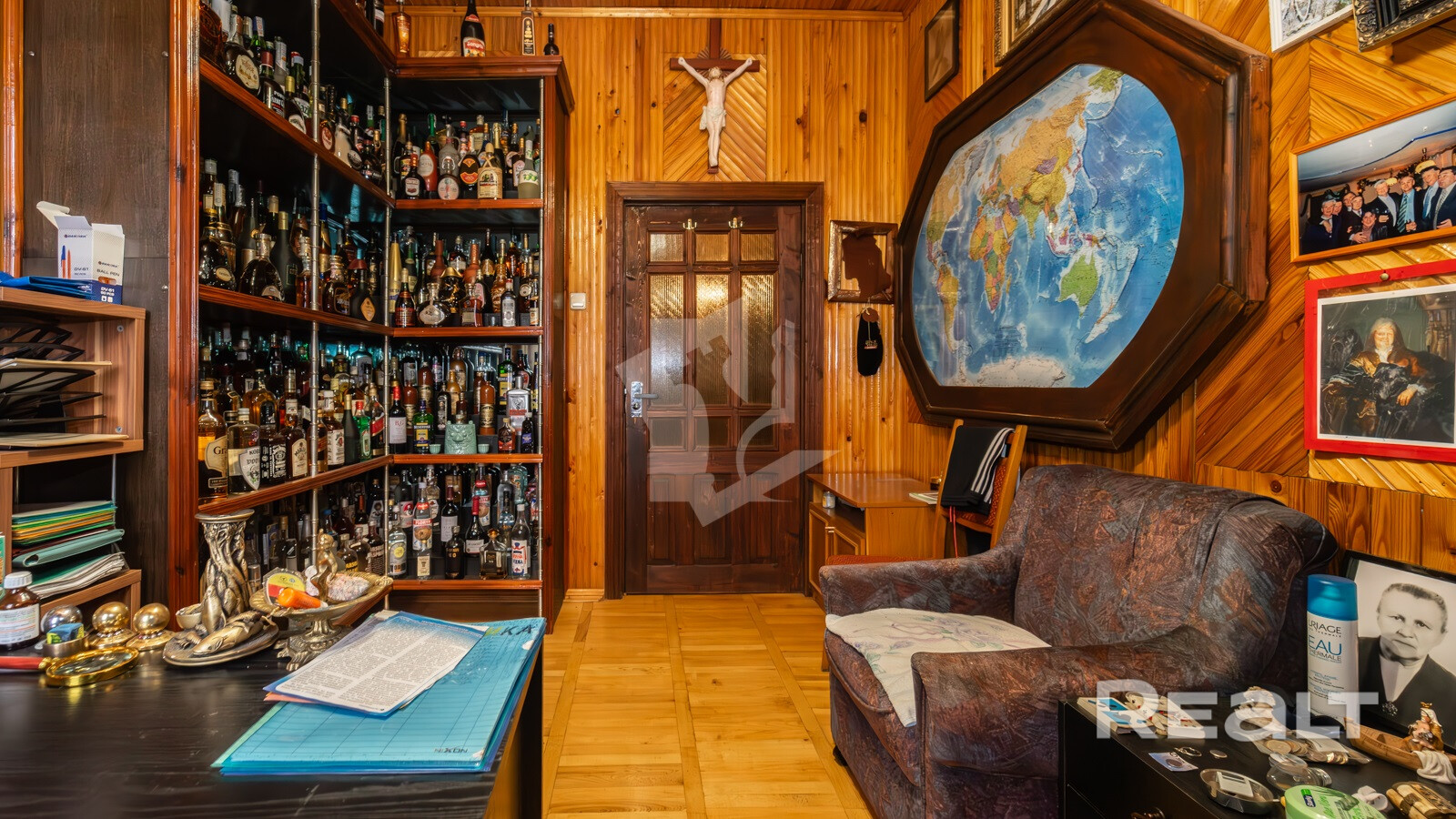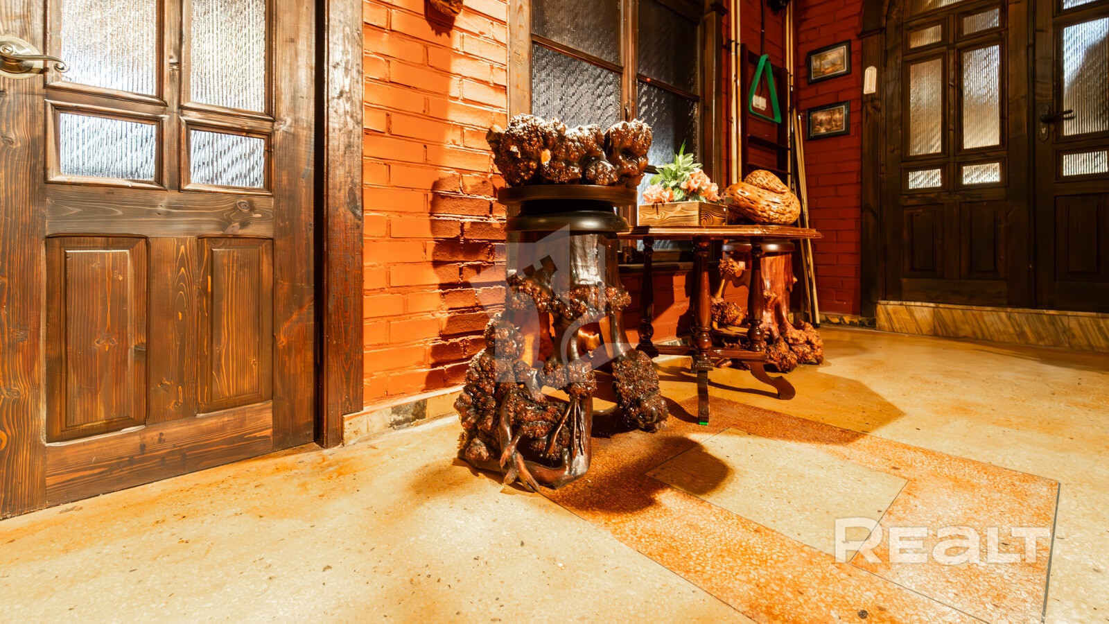 В доме есть свой бассейн, холл с биллиардом, зимний сад, зал охотника. Своя комната с библиотекой, рабочий кабинет, на каждом этаже свой камин, кухни, столовая, спальни, застекленные лоджии, свои сан. узлы и душевые комнаты