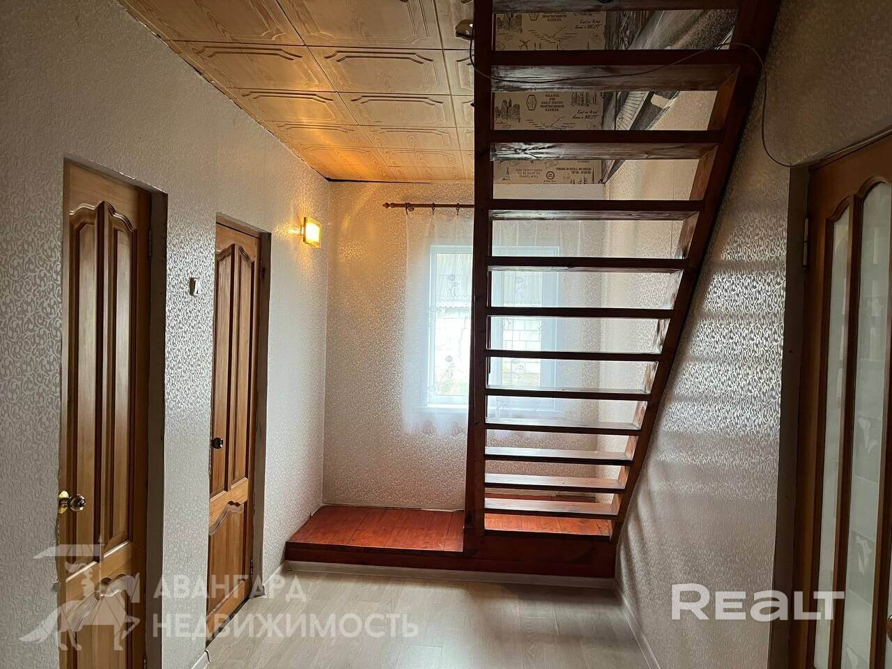 Продается уютный дом в г. Марьина Горка. Дом двухэтажный сруб, обложенный белым кирпичом 1992 года постройки. Общая площадь112,3 кв. м. На первом этаже веранда, прихожая, кухня, гостиная, санузел с душевой и котельная, есть место для гардероба. На втором этаже 3 просторные комнаты. Газ введен в дом, отопление от двухконтурного котла, но есть и котел на твердом топливе. Электричество 220, 380В, центральный водопровод, канализация местная, сан узел в доме и на улице. Интернет (оптоволокно), телевидение, телефон. Окна практически везде стеклопакет. Крыша шифер. Участок более 25 соток, ровной формы, огорожен со всех сторон забором. Есть плодовые деревья и кустарники, огород, место для отдыха и хоз. постройки. Есть гараж. Колодец. Тихое и спокойное место, хорошие соседи. В шаговой доступности – магазины, школа, детский сад. Хорошее транспортное сообщение (электрички, маршрутки, автобусы). Маршрутки регулярно ходят до Минска (ст.м. Могилевская). Удобный выезд на трассу М4.