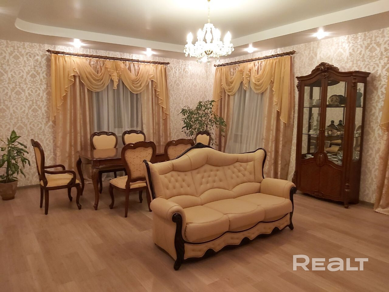 Уютный светлый комфортный дом высокого уровня. Просторные холлы, комнаты. Шикарная бильярдная 60 м2. Большие санузлы с окнами, шторами, люстрами. Дорогая мебель, камины и лестница из итальянского мрамора, ванна из литьевого мрамора, перила на балконе из камня, кухня, двери из массива, кожаные мягкие углы. Входная группа - гранит. Цена намного ниже рыночной. Торг небольшой.
