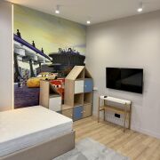 - 2-й этаж: 3 комнаты (одна большая спальня с гардеробом + детская + гостевая).