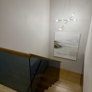 Лестница сделана из дорогостоящего ударопрочного дерева и ограждение из двойного коленного стекла