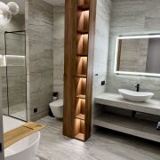 В «Лайнхаусе» выполнен дизайнерский ремонт с применением современных материалов: в жилых комнатах уложен качественный ламинат, вся плитка итальянского производства, текстиль индивидуального пошива. В сан узлах установлены брендовые смесители и сантехника.