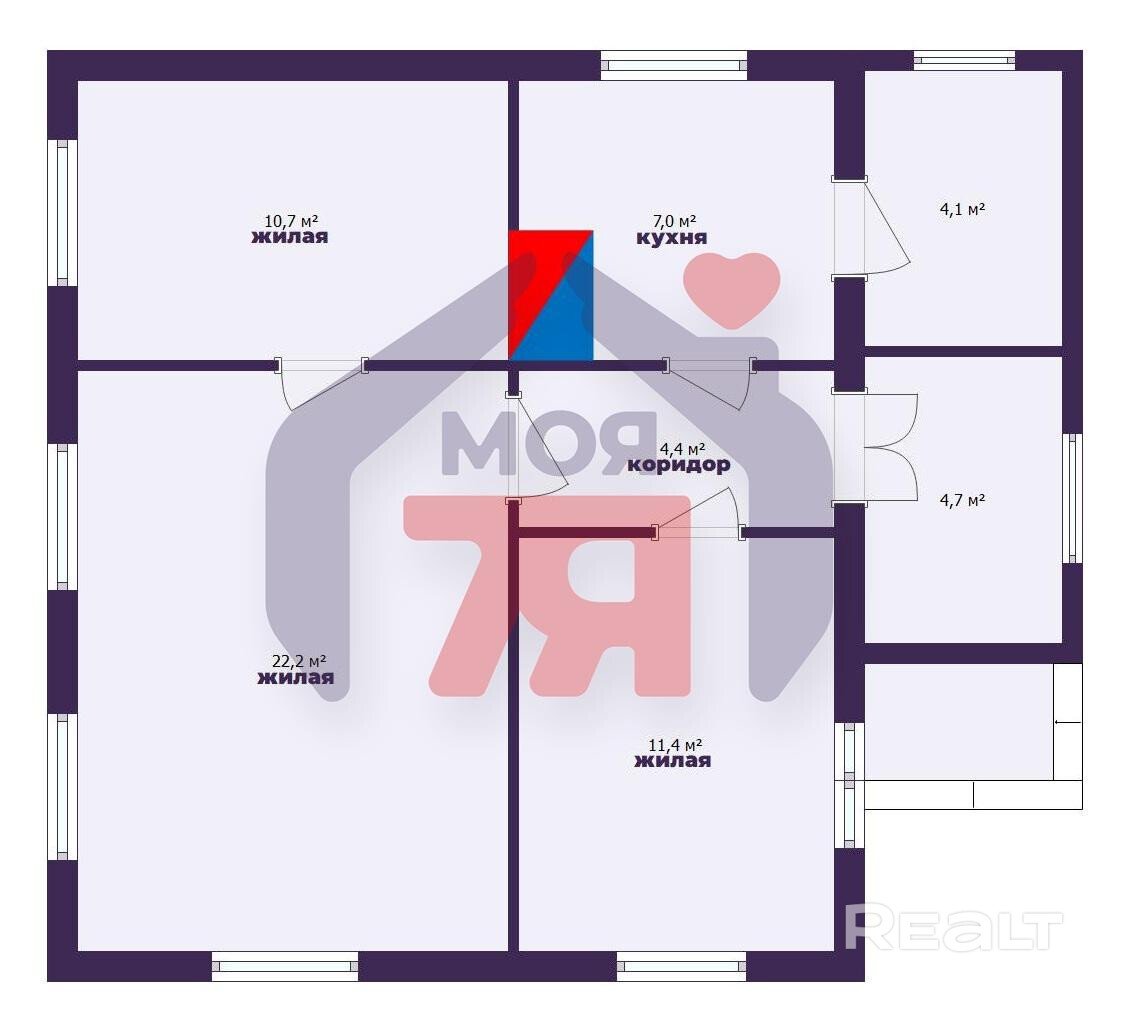 - Одноуровневый дом общей площадью 64,5 кв.м, жилая площадь составляет 55,7 кв.м, площадь кухни 7 кв.м. Просторные помещения, продуманная планировка и светлые комнаты создают атмосферу уюта и комфорта.