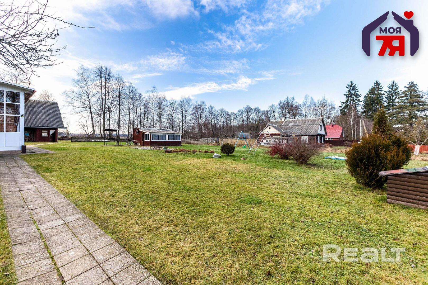 - Участок 31 сотка - ухоженная территория с множеством возможностей. Ровная, благоустроенная земля, где создано всё для отдыха и ведения личного подсобного хозяйства: баня, беседка, детская площадка, погреб, сарай. На участке плодовые деревья, кустарники и 50 кустов голубики, а также выделено место под огород. Простор и зелень вокруг создают атмосферу уединённости и гармонии с природой.